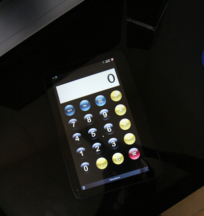 L'application "Calculatrice" n'a rien de révolutionnaire en soit. Sauf que comme les autres applications Scale, elle s'affiche indépendamment de la résolution. Cela signifie concrètement que quelque soit la taille d'écran, la calculatrice fera la taille de celui-ci sans que l'affichage n'en soit dégradé. Vous le voyez sur les deux photos présentes dans ce billet : en mode portrait sur une SmartPaddle, elle s'affiche sur tout l'écran (elle a été codé pour ce mode) ce qui en fait probablement la calculatrice de bureau la plus grosse jamais développée