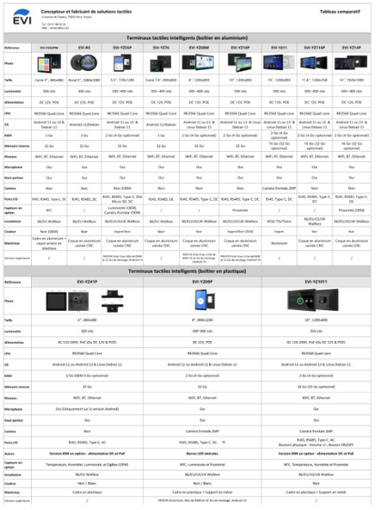 Vous pouvez également télécharger notre comparatif en PDF, pour découvrir toute la gamme des tablettes murales EVI.